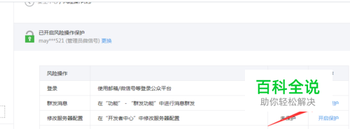 进入详情之后,有一个表格,在风险操作方面找到,群发消息,之后找到保护状态,你会发现显示以保护,之后点击关闭保护。