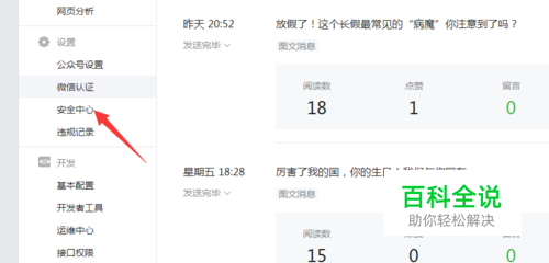 首先,我们进入微信公众号,之后下拉页面,在设置-安全中心,点击安全中心进入界面。