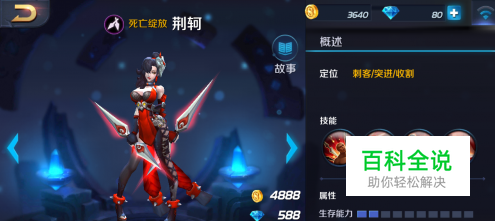 影杀——荆轲神速闪现至附近生命值最低的敌人身后(优先英雄),并发起一次强力刺杀,造成物理伤害