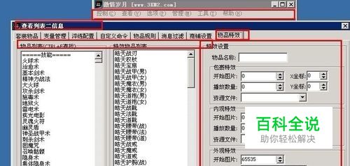 第一步: 打开M2-查看-列表信息2-物品特效 找到可以看见.物品列表.特效物品列表.特效设置(如图)
