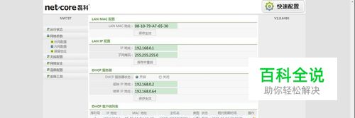 网络参数--外网配置--wan配置--网络接入类型:动态ip 内网配置--lan ip配置为:192.168.0.1
