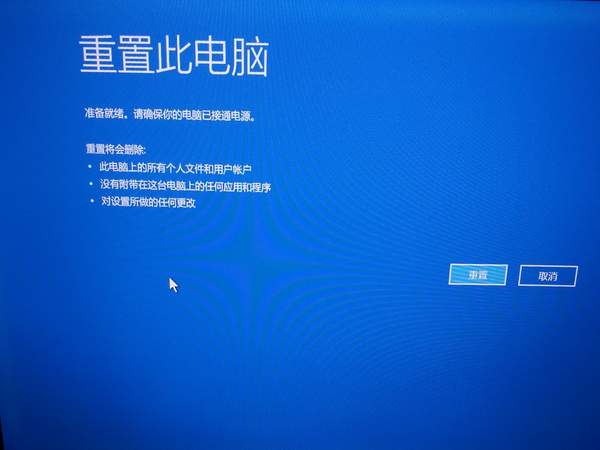 电脑会进入重置电脑准备状态