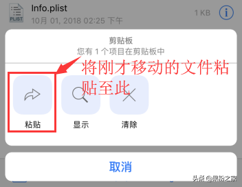 保存后,再点击左下角的“···”,粘贴,就可以看到iOS 10圆点信号文件已经在这个文件夹里了。