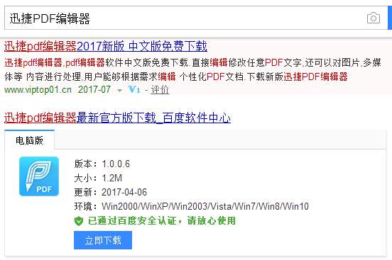 上面所介绍的是通过管家中软件管理下载PDF编辑器,其实我们还可以通过浏览器下载PDF编辑器,打开百度浏览器搜索PDF编辑器!