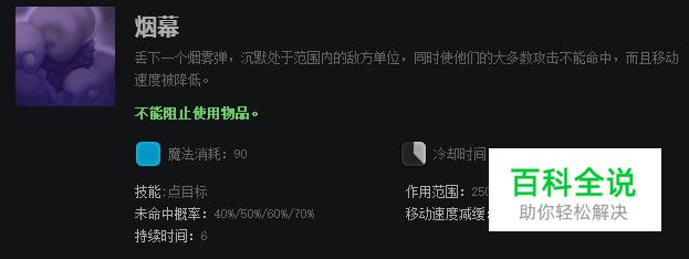烟幕,影刺在指定位置释放技能展开一块烟幕,烟幕笼罩的地方能够禁魔减速并降低敌方的命中率。