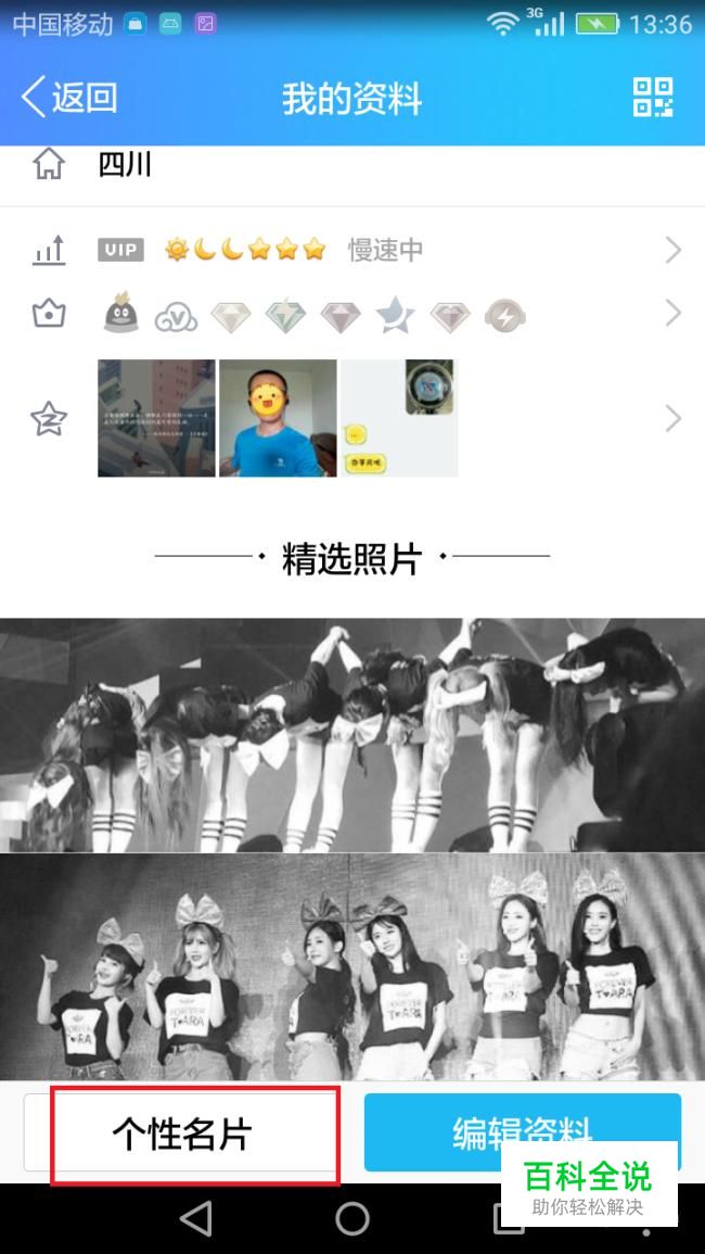 点击我的资料界面下方的“个性名片”进入个性名片界面。