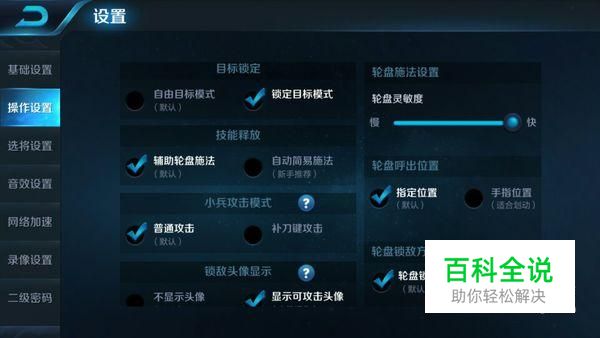 辅助轮盘施法,熟练的玩家必选的操作方式,可以在第一时间内释放所有技能将伤害打在目标身上。选择了辅助轮盘施法,我们还能选择灵敏度和轮盘位置,达到一种随心所欲的效果,极度方便。