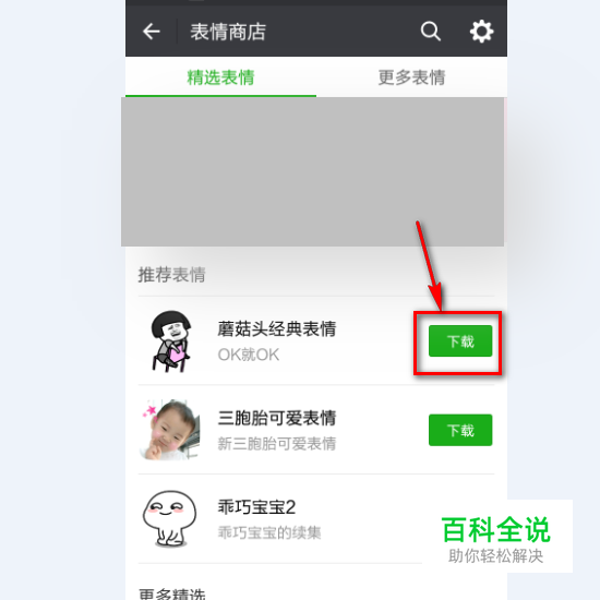 如图,这里有很多种表情包,可以选择自己喜欢的表情包进行下载,小编我比较喜欢逗比的表情包,就下载了这个。