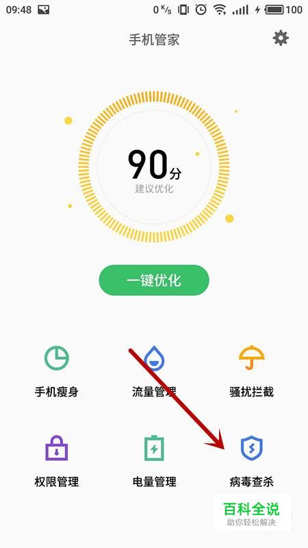 进入手机管家后,选择“病毒查杀”
