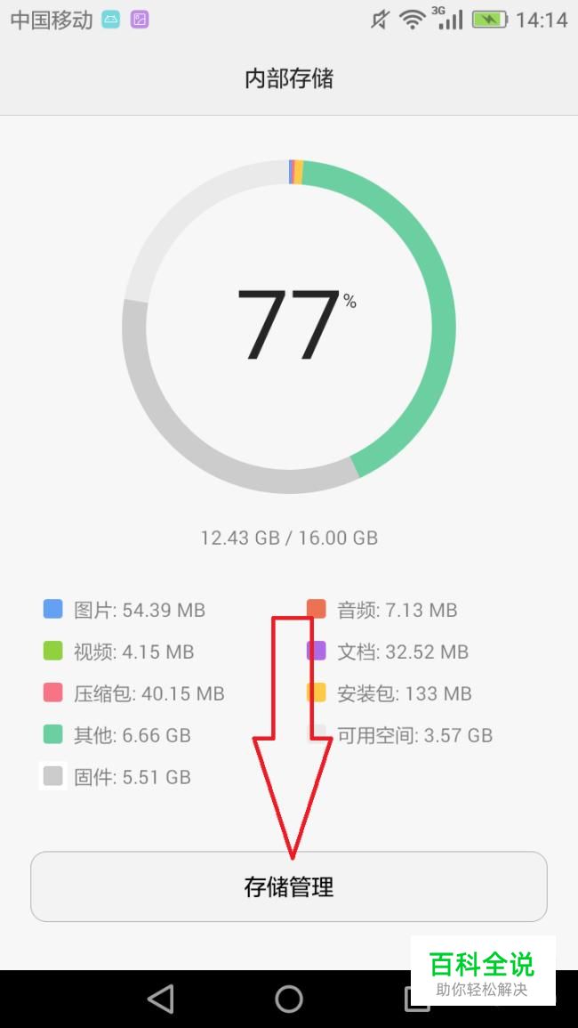 进入新界面后点击存储管理。