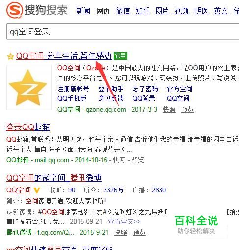 在搜索结果中,随便选择一个可以进入到qq空间的链接就可以,我们选择第一个好了。