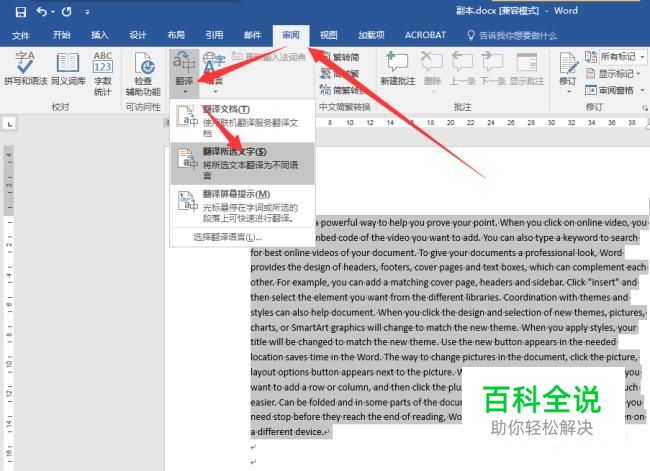 先说个规范的使用方法~点击审阅,点击翻译,点击翻译所选文字。 如提示需外链,点击确定就行。