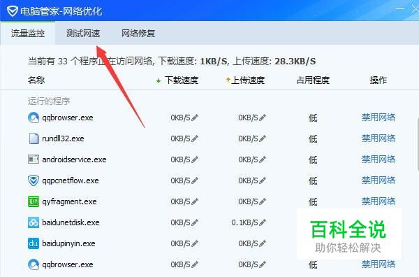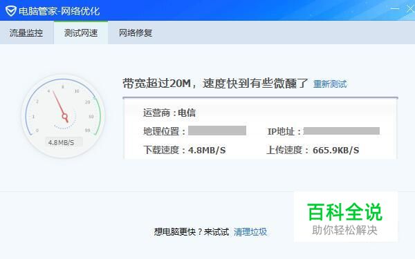 qq邮箱上传附件失败后,首先查看下网络是否正常。打开网络测速软件,这边我们用的是电脑管家,点击测试网速。