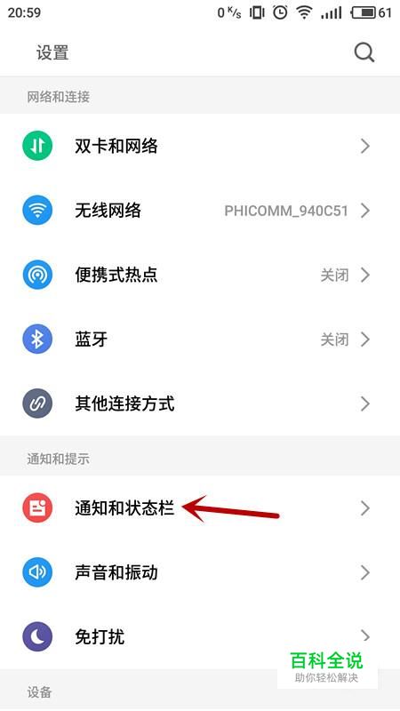 选择“通知和状态栏”