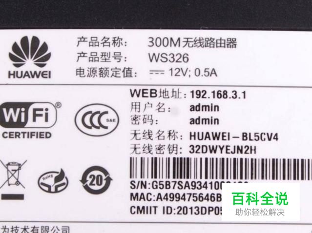 翻看路由器的底部标签,查看路由器的默认ip地址和用户名密码。如图所示: