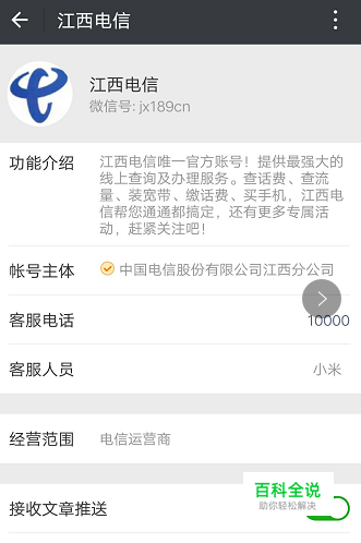 1、微信搜索“江西电信”公众号,关注进入公众号。