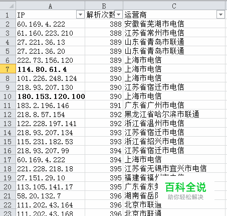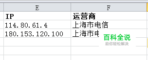 首先,我们这边有一份数据量比较大的表格,左边是ip右边是运营商,加粗的是小编要查找的实例;