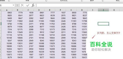 假设,我们有以下数据,8列数据,需要将其变为1列