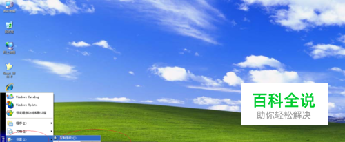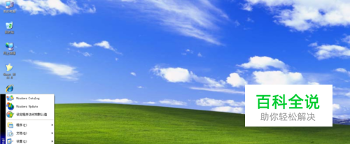 启动Windows XP操作系统,如图所示。点击任务栏"开始"按钮,用于打开开始菜单。