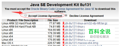 进入JDK下载页面,先选中Accept License Agreement,否则无法下载。选中后,选择对应的系统版本即可下载。