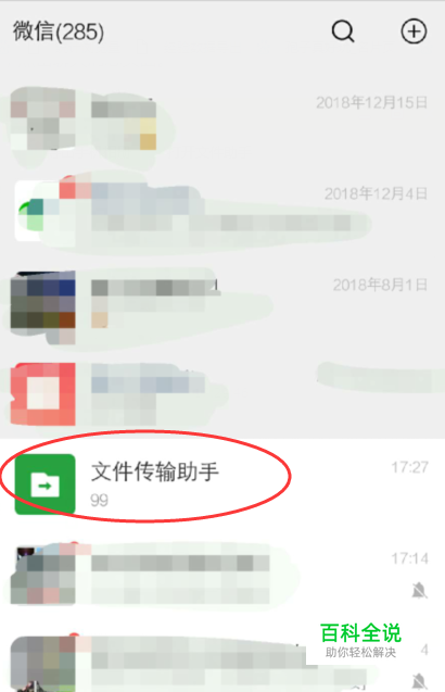 打开微信,点击聊天消息页面,找一个聊天对话框,比如:可以选择【文件传输助手】
