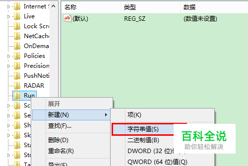 接着,在该键上右击鼠标,选择新建字符串值。