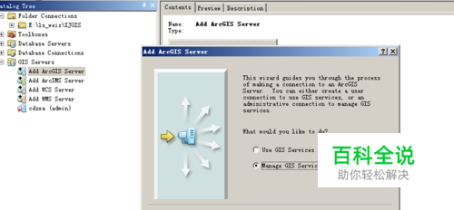 在发布具体服务前,我们需要先建立管理服务。打开ArcCatalog,点击 Add ArcGIS Server。