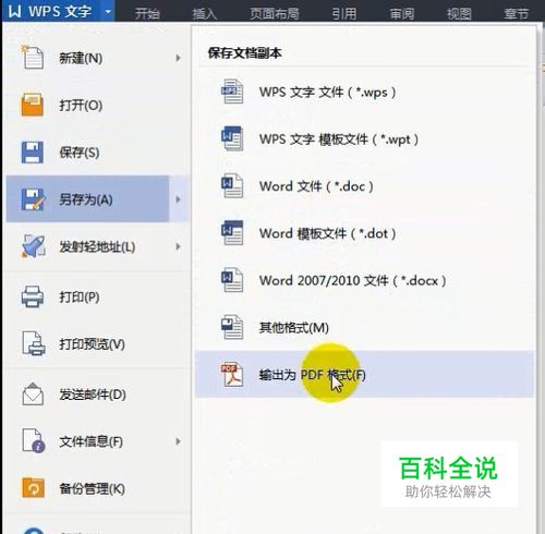 使用wps,方法也差不多,也是点击另存为,但wps的另存为选项里面有输出为PDF选项,这就方便了很多。