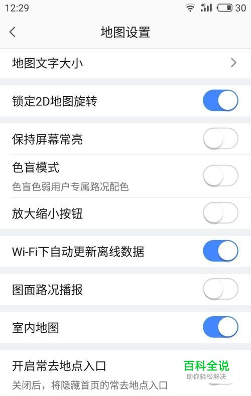 将开启常去地点入口右边的键往左滑动即可关闭。
