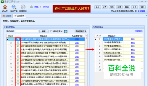输入店铺地址之后,点击下一步会自动弹出一个”选择要复制的分类“的框框。选择复制店铺的全部商品或是分类中的部分商品