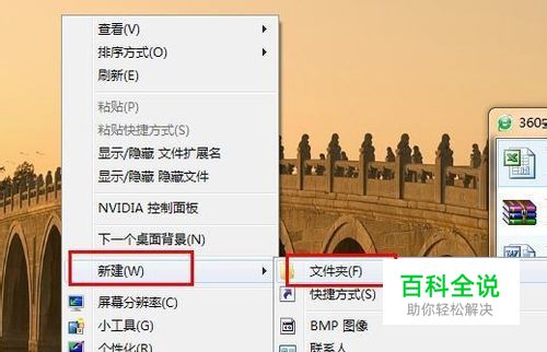 首先在一个你喜欢的地方新建一个文件夹,这个文件夹的位置要安全,不要放在桌面,这样容易被删除,也会占用电脑资源。笔者示范的时候放在了桌面。右键单击桌面,弹出右键菜单,选择新建——文件夹。