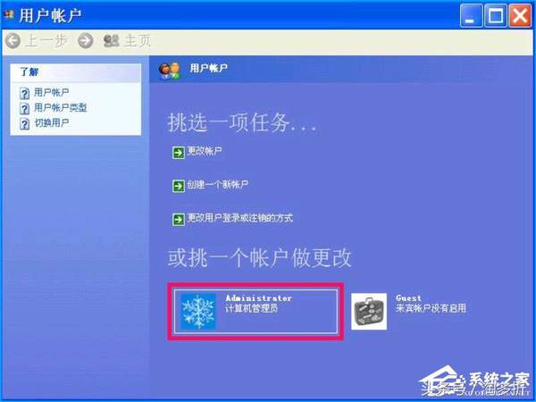 2、进入用户帐户后,如果之前的电脑没有设置管理员帐户,必须先设置管理员帐户,就用Administrator作管理员帐户,打开它,先给它添加密码,两次输入密码,再输入一个提示词,点“创建密码”,就能创建管理员帐户。