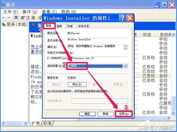 4、在“常规”下,将“启动类型”设置为“已禁用”,然后按下面的“应用”按钮确认设置。