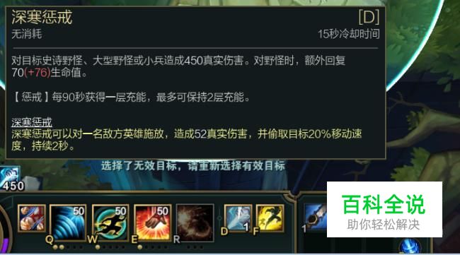 寒冰(深寒)惩戒:寒冰惩戒是在猎人的宽刃刀升合成追猎者的刀锋(俗称蓝色打野刀)后升级的一个技能。你的惩戒可以作用于玩家,对他们造成28-164点真实伤害,并在2秒里偷取目标20%的移动速度。寒冰惩戒适合抓人。类似于虚弱。