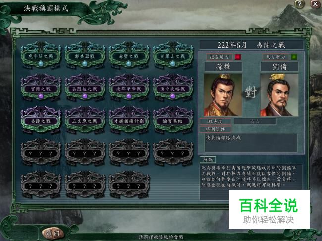 夷陵之战是决战称霸模式第九个关卡,这一关如果不触发火烧连营的剧情非常难打。
