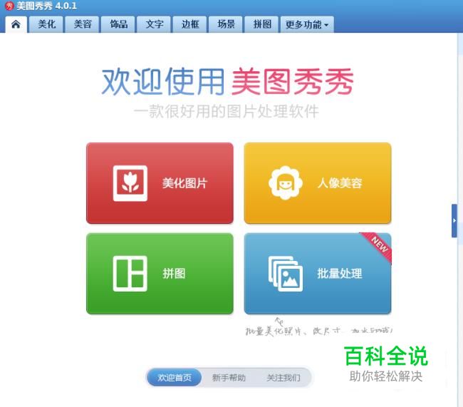 在桌面上找到美图秀秀的快捷图标,单击鼠标右键在弹出的右键菜单里找到打开选项,点击打开进入该软件的操作界面,如图所示: