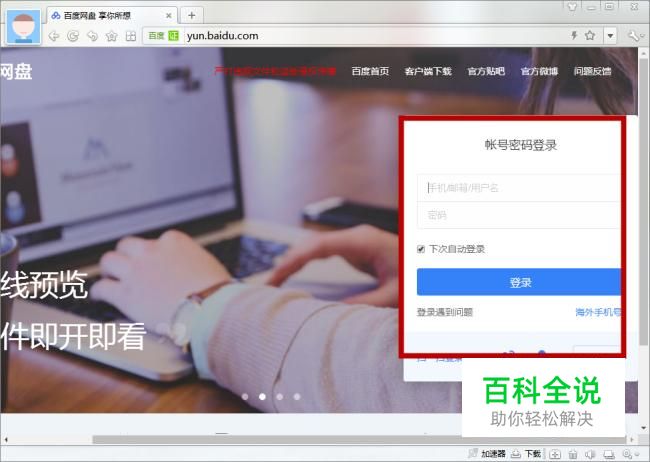 在电脑端打开搜狗浏览器,进入“yun.baidu.com”