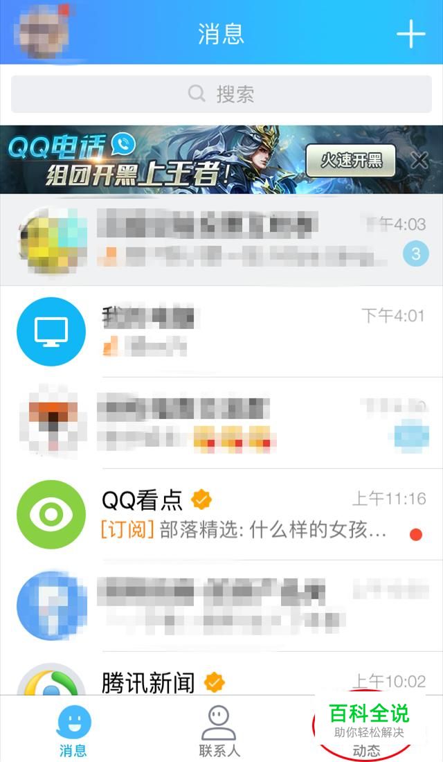 打开手机QQ,点击右下方的“动态”。
