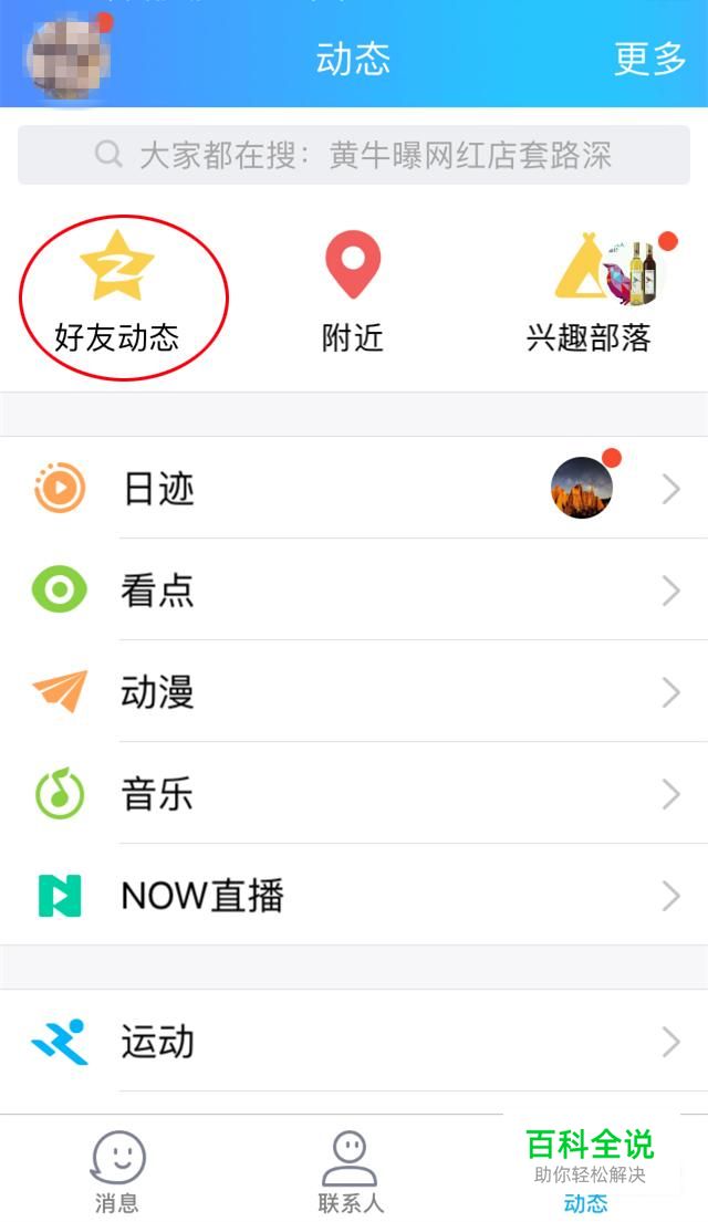 在动态界面,点击“好友动态”。