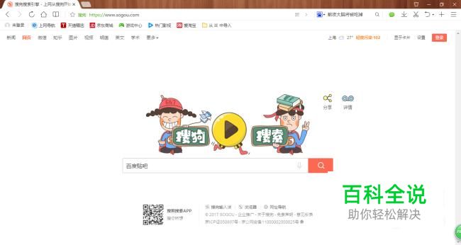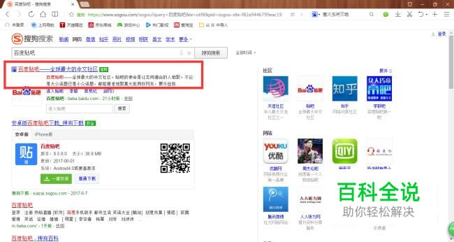 打开搜狗搜索,输入百度贴吧,按Enter键