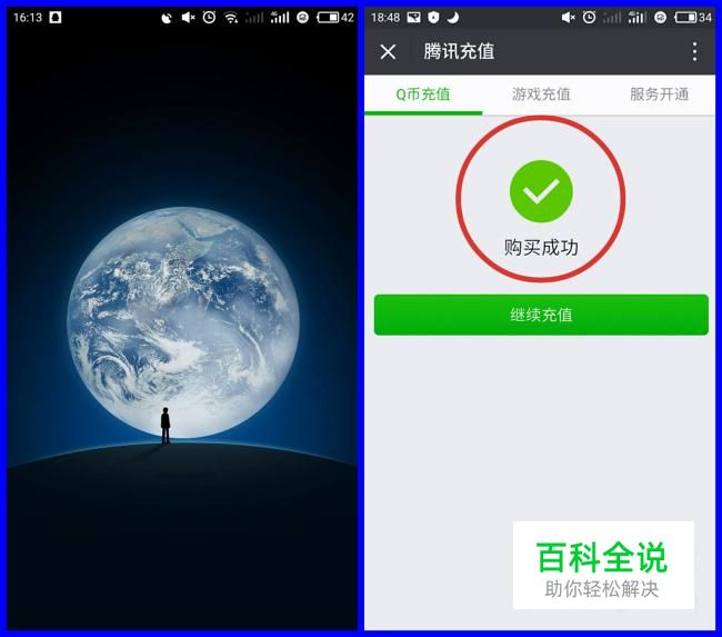 输入密码后就会提示充值购买完成,在支付成功界面,点击完成下面的腾讯充值,即可关注腾讯充值官方公众号。