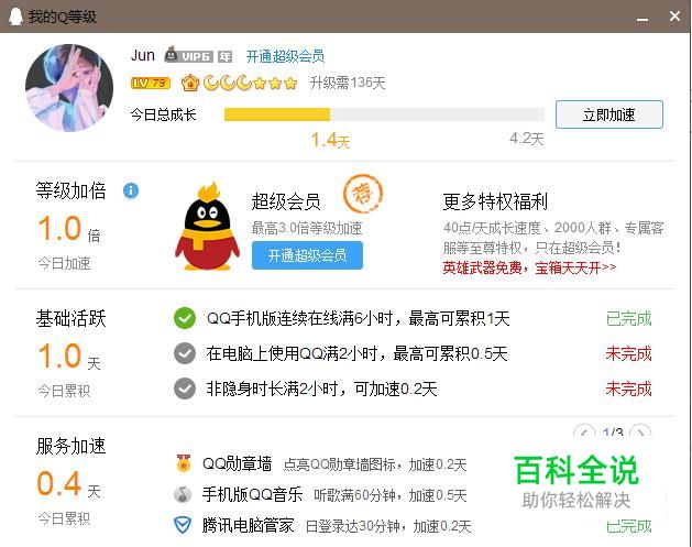 现在有很多方法可以获取成长值加速,例如开通会员等等,还有一些应用可以增加活跃天数,获得更快成长。