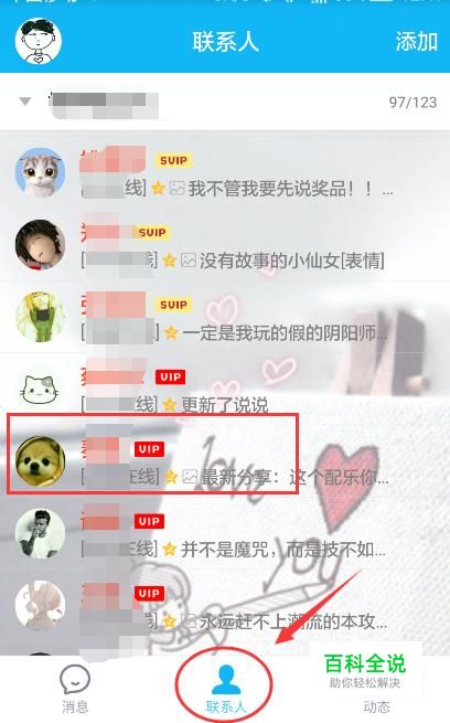 打开QQ后点击联系人页面,从自己的好友中找到那个想要添加特别关心的好友。