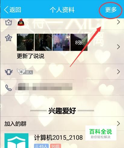 点进他/她的个人资料页面后点击右上角的“更多”。