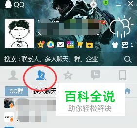 首先登录我们的QQ,在主页面有一个群聊的图标,就是图中圈出来的东西。