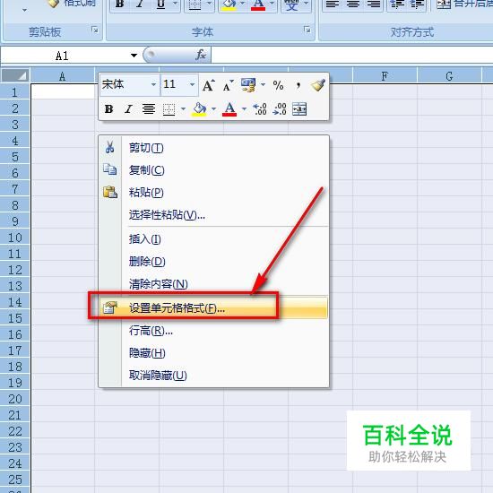 全选中表格之后,单击鼠标右键,选择“设置单元格格式”。