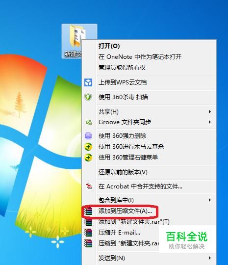 首先,我们找到该文件夹,如图所示,右键点击,选择“添加到压缩文件”。