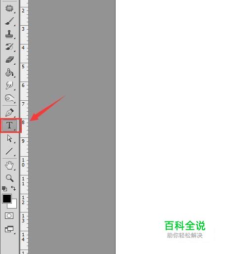 打开ps新建一个文件,然后在工具箱内找到文字工具,如图所示: