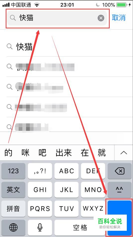 点选右下角“搜索”,在搜索框中输入“快猫”,点击搜索。
