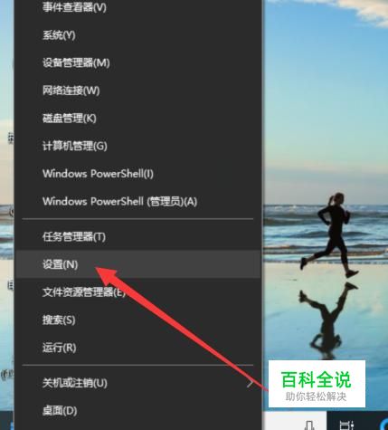 打开电脑,右击Windows按键,选择“设置”,如图所示。